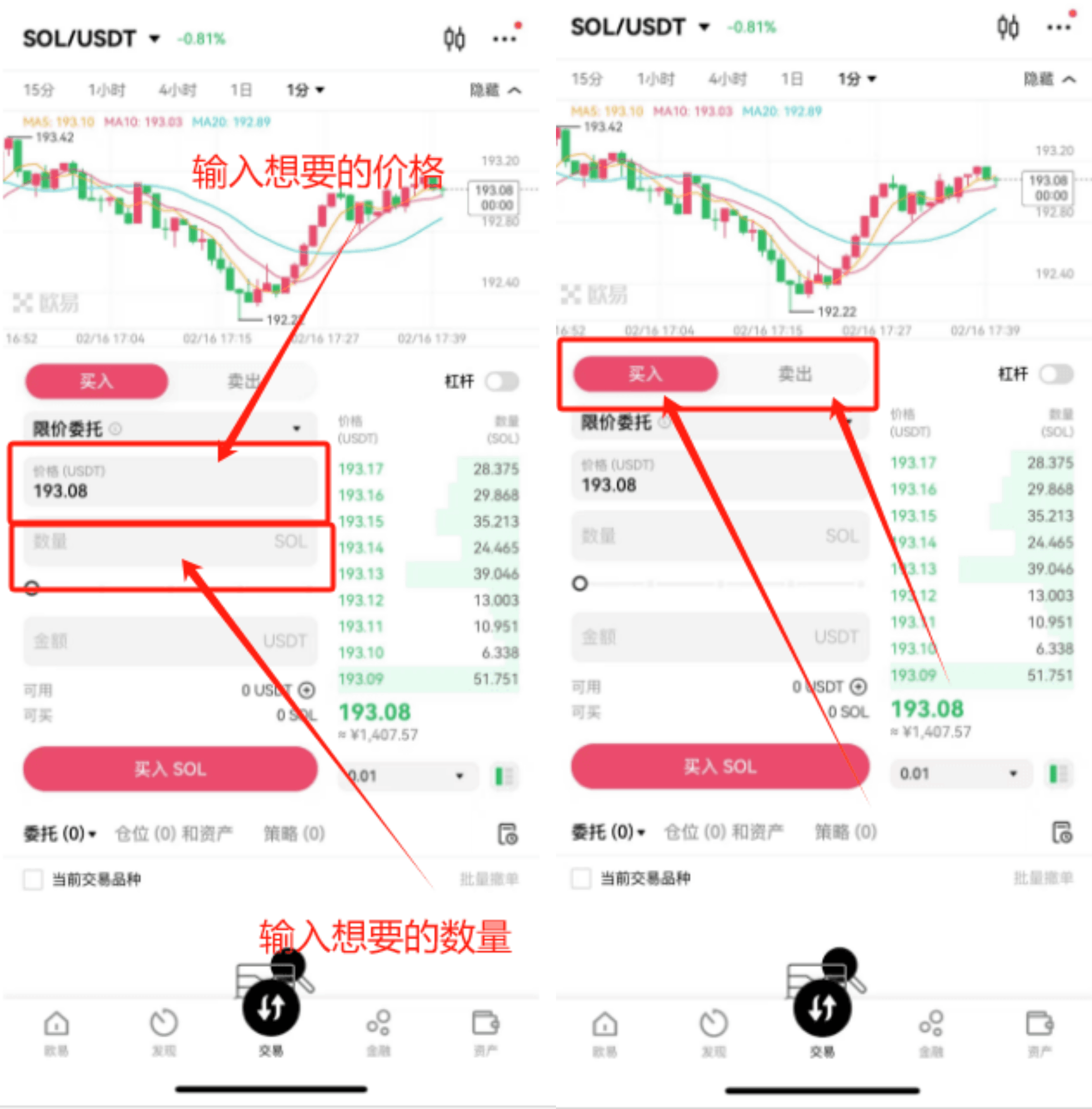 - 在买卖界面,你可以设置限价单(自己设定价格)或者选择市价单(以当前市场价格成交)。然后输入你想交易的数量,点击【买入】或【卖出】。 2.2 确认订单