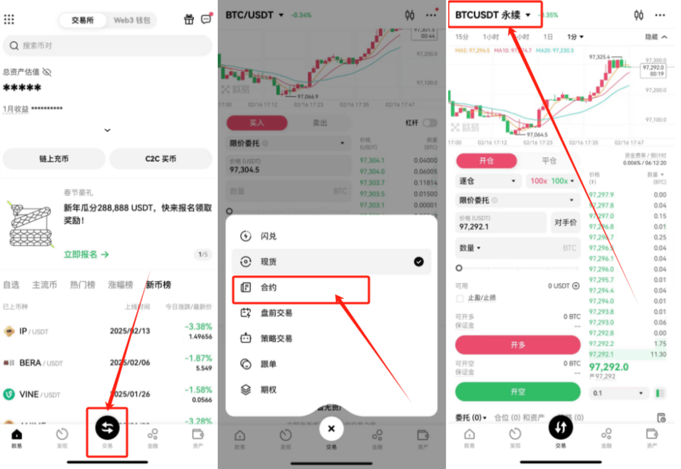 - 选择合约类型(OKX提供永续合约和交割合约等多种合约类型,你可以选择最适合自己的合约进行交易。)
